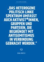 gegenwärtig – entgegen des eigenen Selbstverständnisses – einen sehr verkürzten und begrenzten Begriff von Antisemitismus hatten und noch immer haben. Das hat zur Konsequenz, dass auch von linken Akteur*innen u. a. politische Kampagnen, Mobilisierungen und sogar gewalttätige Aktionen gegen Jüdinnen*Juden und Repräsentationen des Jüdischen begangen werden.